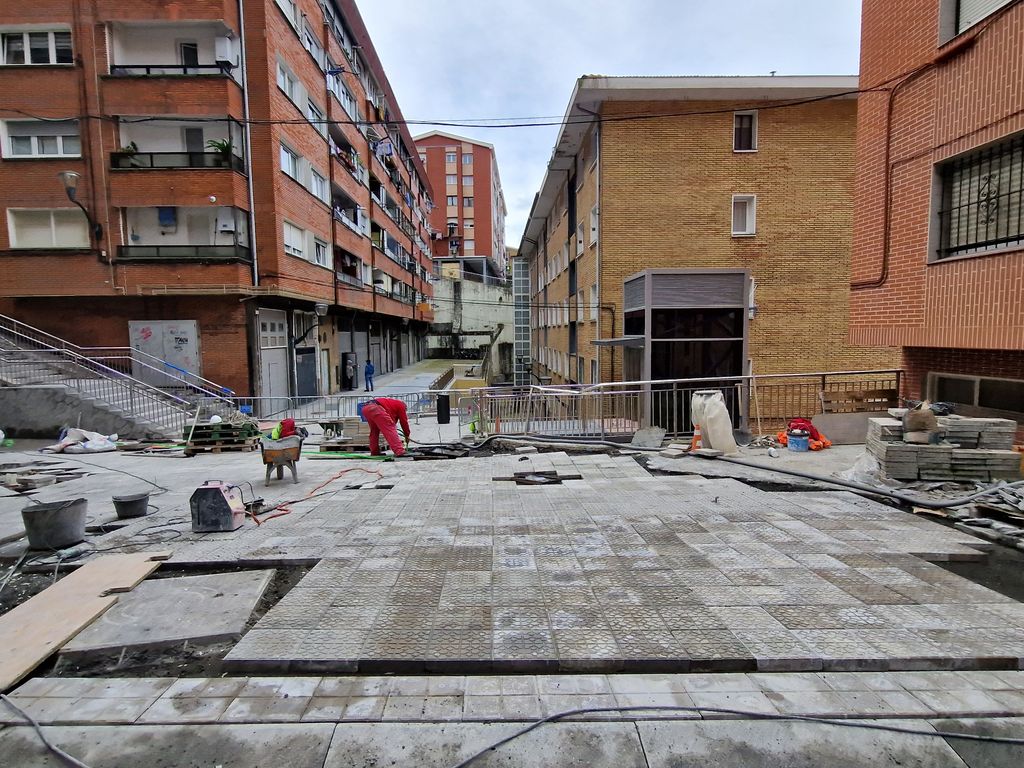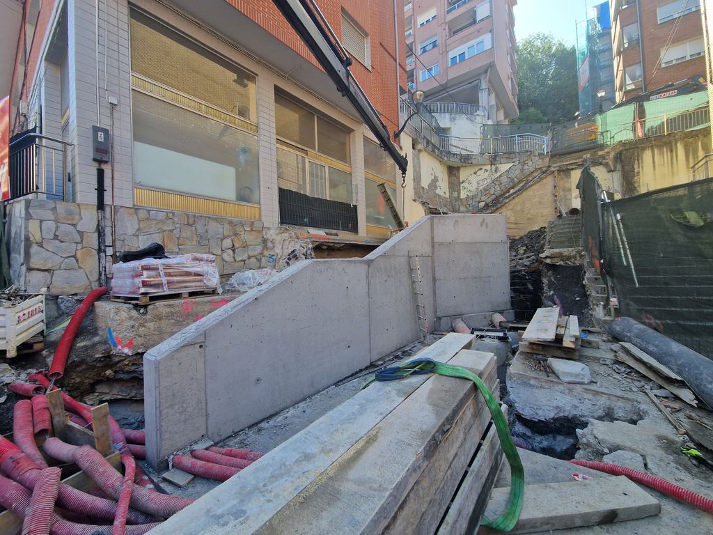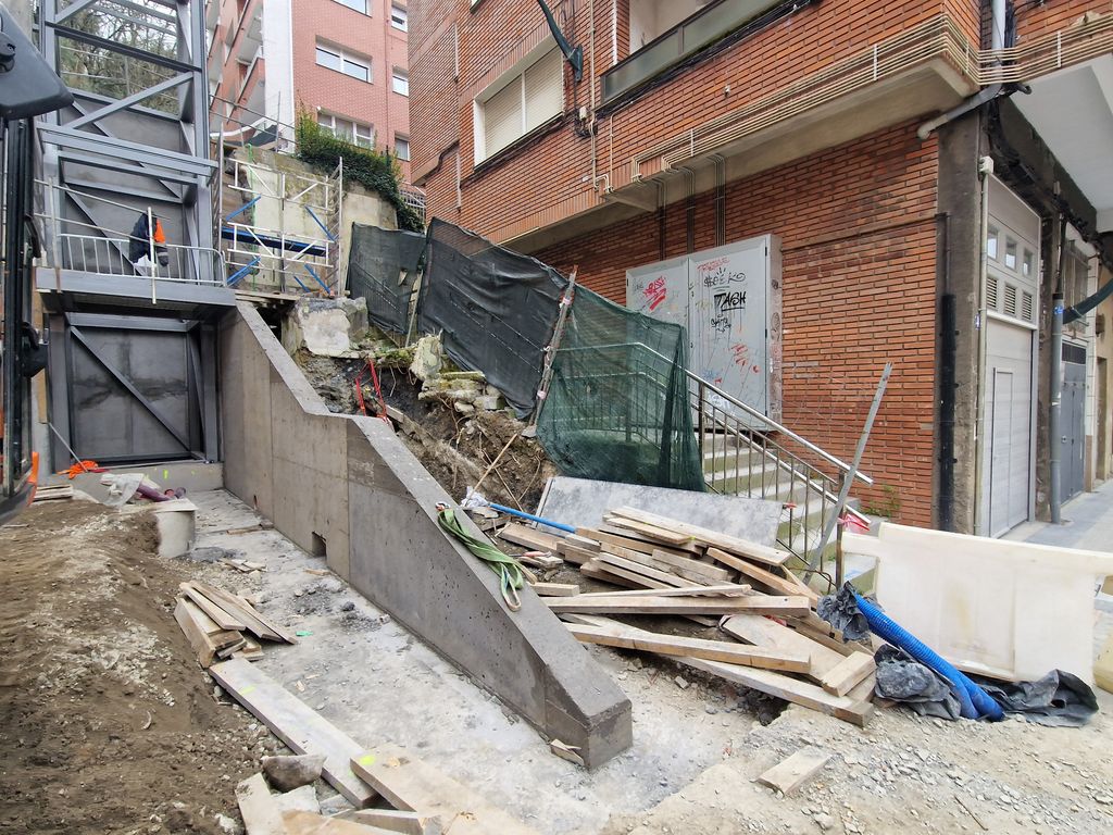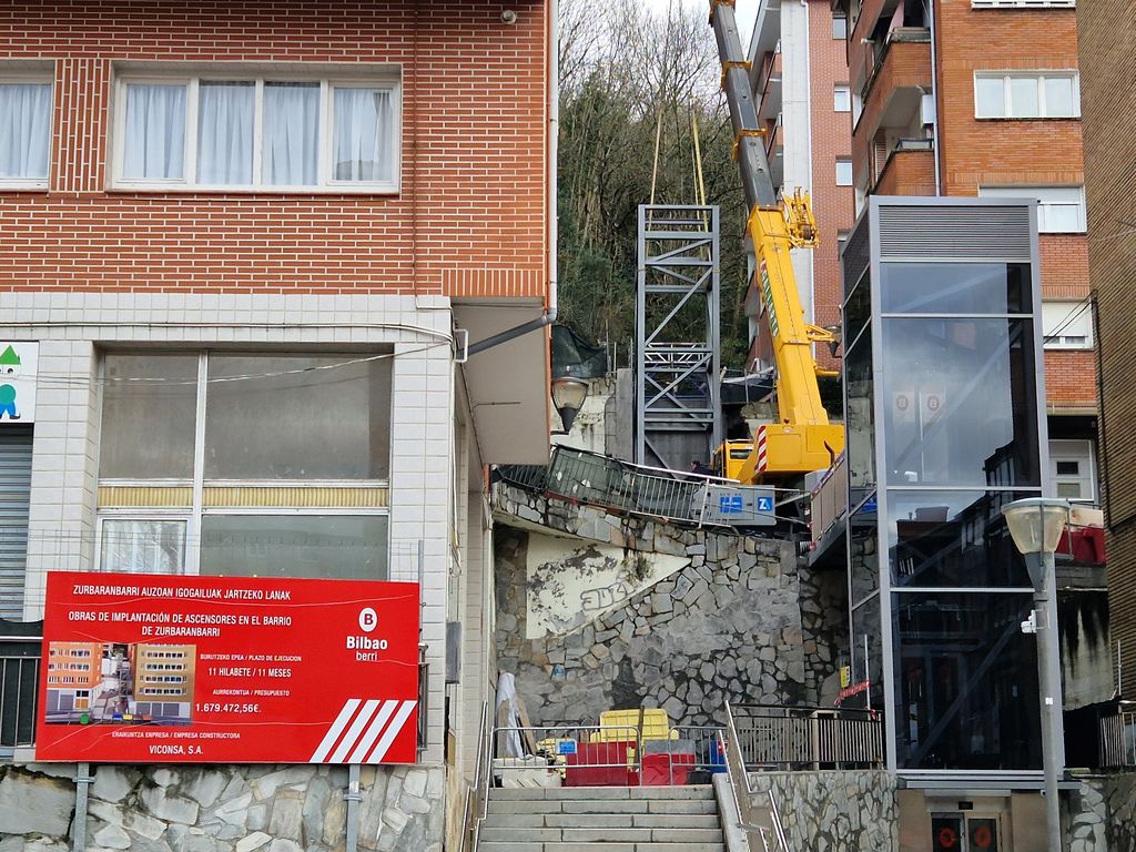 Obras de implantación de ascensores en el barrio de Zurbaranbarri, eje1 en Bilbao
