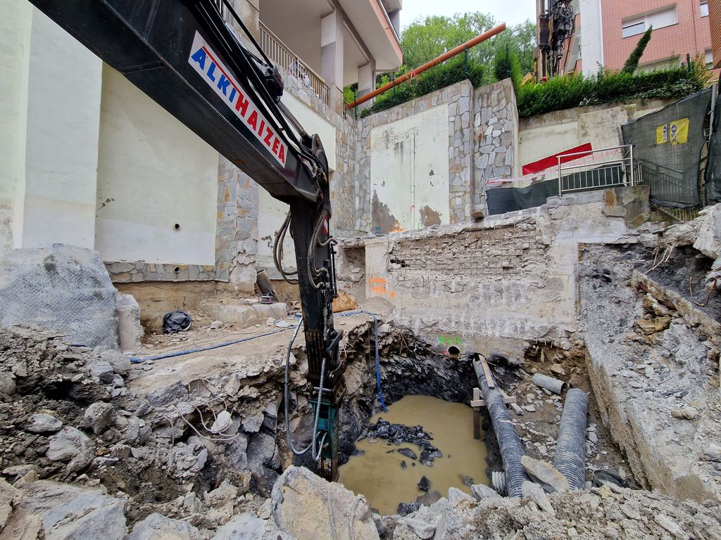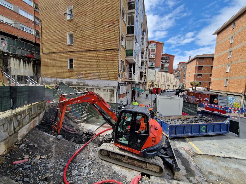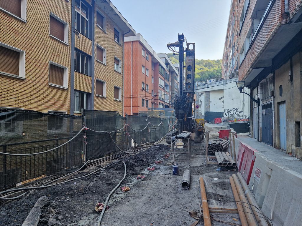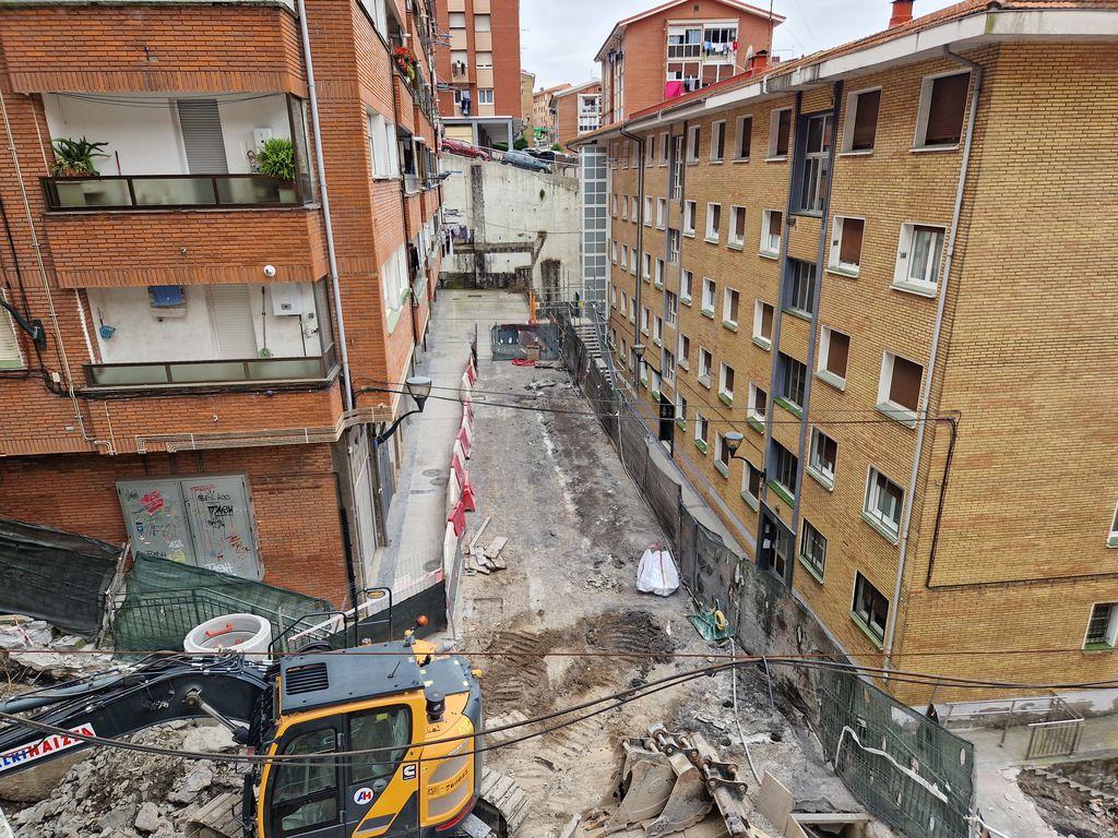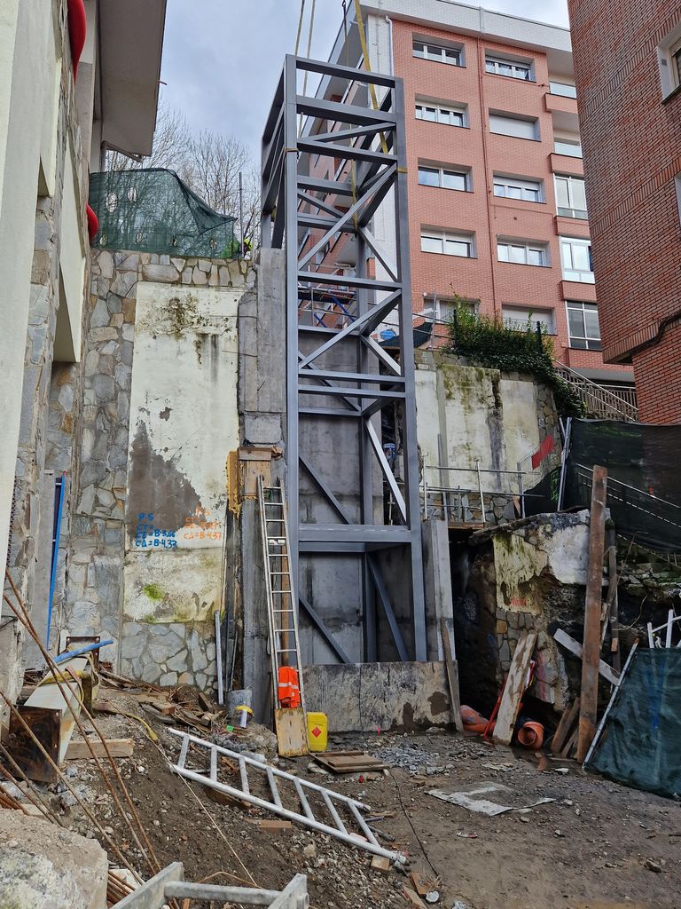 Obras de implantación de ascensores en el barrio de Zurbaranbarri, eje1 en Bilbao