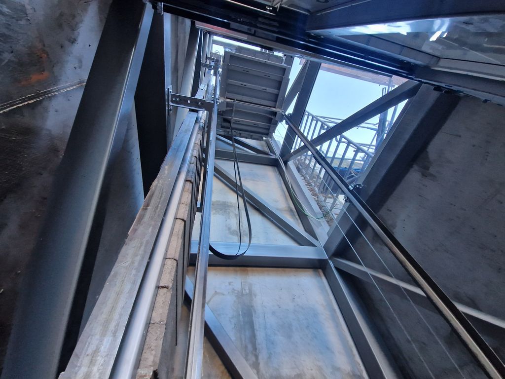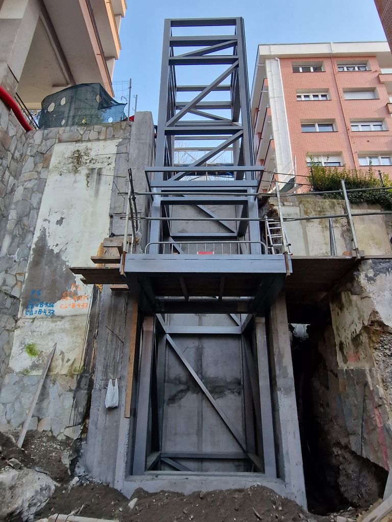 Con las obras de fábrica ejecutadas, se procederá al montaje de la estructura metálica que conforman los núcleos de los diferentes ascensores y sus correspondientes pasarelas. A continuación, se procederá a la implantación de los ascensores y se colocarán los cerramientos de estos mediante vidrio. Por último, se procederá al tendido de las instalaciones que den servicio a los diferentes ascensores.