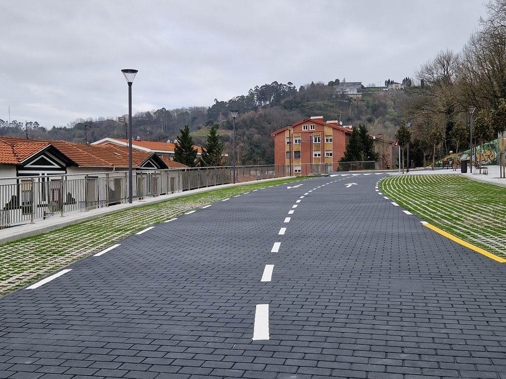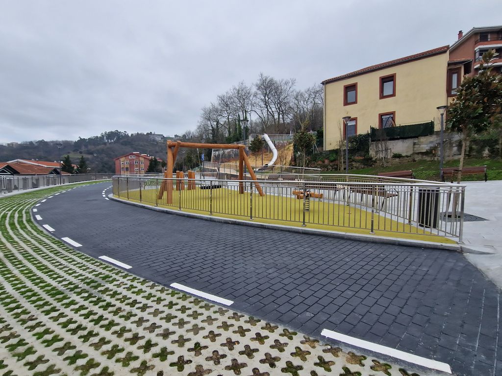 Se genera un nuevo vial creando 24 plazas de aparcamiento, más una para PMR, al que se suman pequeñas islas de juegos infantiles adosadas al mismo.